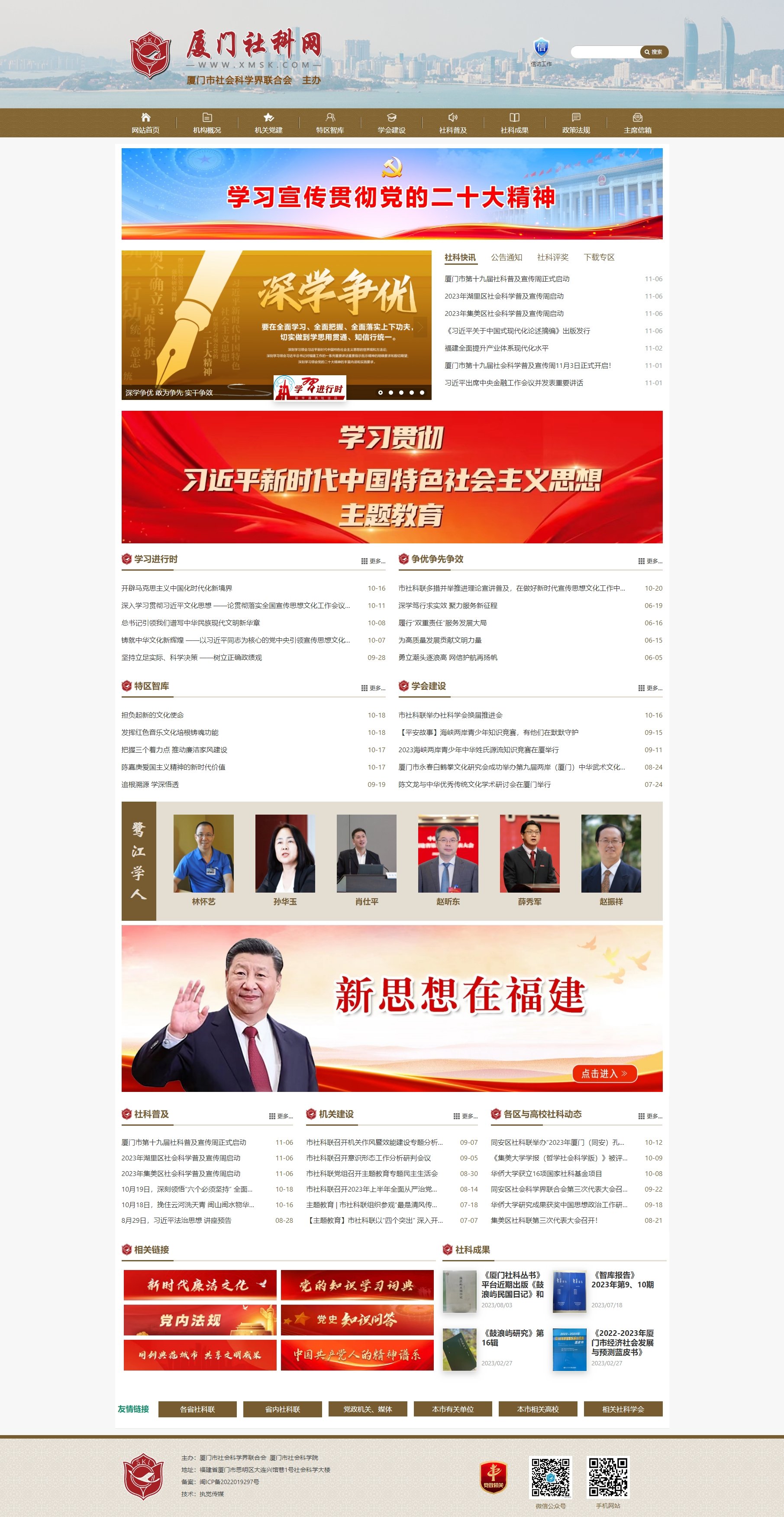 厦门市社科联成立于1984年。是中共厦门市委领导下的人民团体,是全市性社会科学会(研究会、协会)的联合组织,是市委、市政府联系广大社会科学工作者的桥梁纽带和发展社会科学的助手,为全市社会科学研究、学术活动的组织牵头单位。